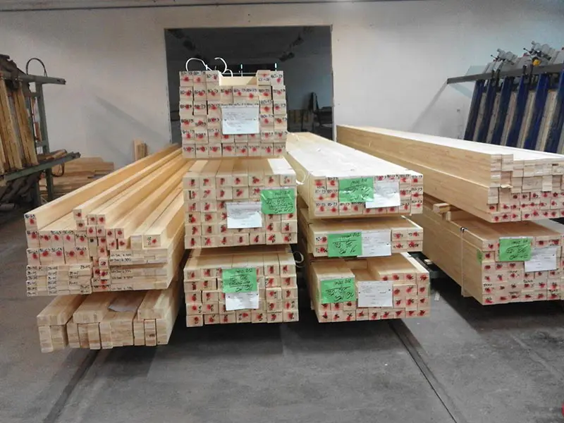 Each completed finger jointed and laminated timber section is inspected for quality, removing anything that is not to standard. Finally the sections are packaged, labelled and prepped to be shipped into the factory for production to begin.
