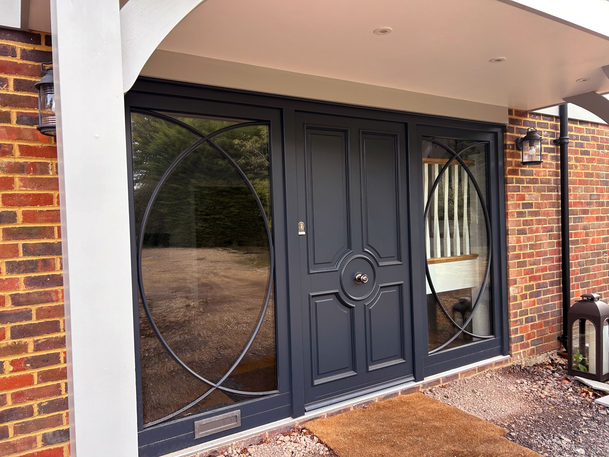 Their neighbours had just completed their own renovation and highly recommended Bereco for the front door. Inspired by the decorative door design with a central circular panel and moulding from our website, the homeowners immediately envisioned it for their own entrance! The design also incorporates Bolection moulding, a decorative moulding which projects outward from the panel or frame, creating a distinctive and striking element. With a wide front door opening, they sought to maximise natural light and opted for sidelights to complement the door design. The elegant fishtail pattern in the sidelights was also inspired by a design on our website, where we feature it on a fanlight above a door.