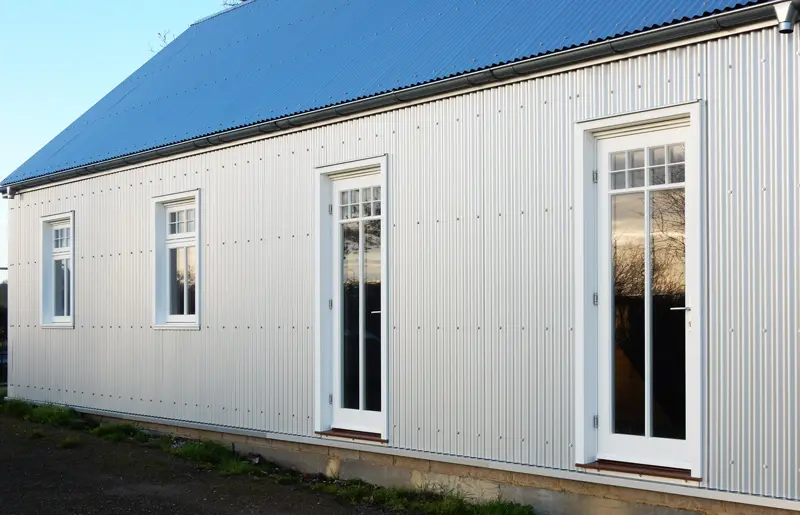 Also know at the Tin Tab and once a place of worship, this project presented unusual complications in that special consideration was required to accommodate the junction between the corrugated metal cladding and the intersection with the windows. This is where the expertise of both Bereco and Parker Building Supplies was utilised in designing replacement timber windows which would fit in seamlessly with the design and make of this extraordinarily unique building. Specially made Bereco Traditional flush casements painted in RAL 9016 – Traffic White tie in seamlessly with the building design and provide striking visuals.
